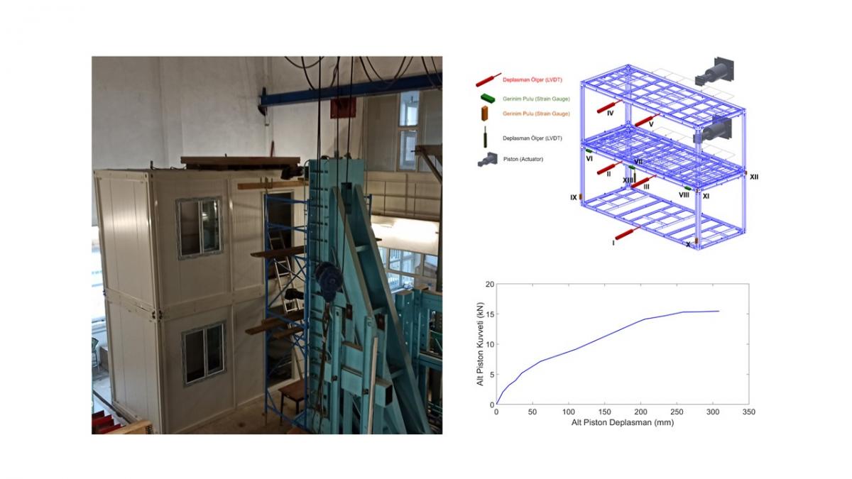Determination of horizontal load carrying capacity and ductility factors of a 2-story container building with plan dimensions of 6.0 m x 2.3 m and story height of 2.6 m